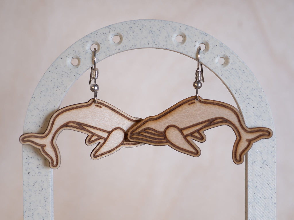 Stilig Knølhval-Øredobb med Åpen Krok i Kryssfinér