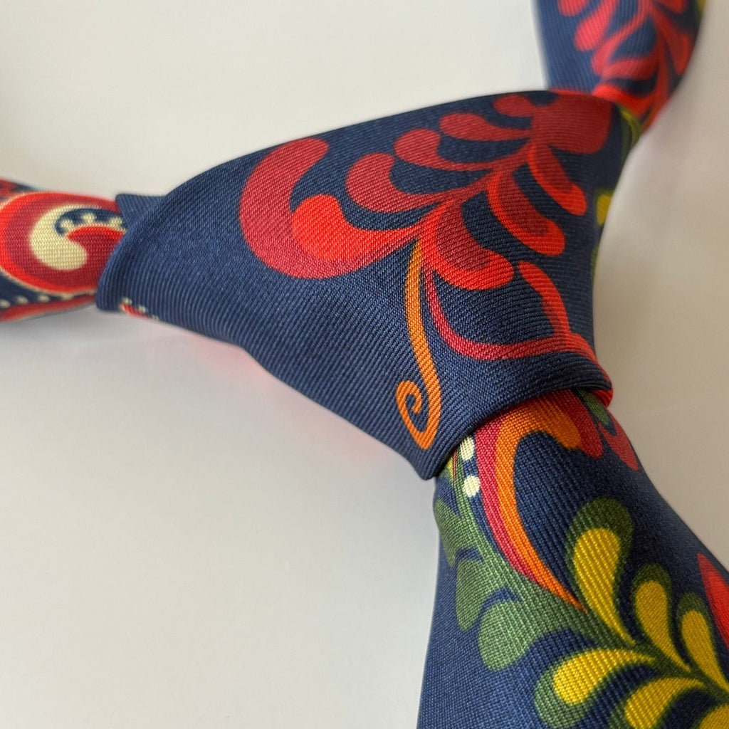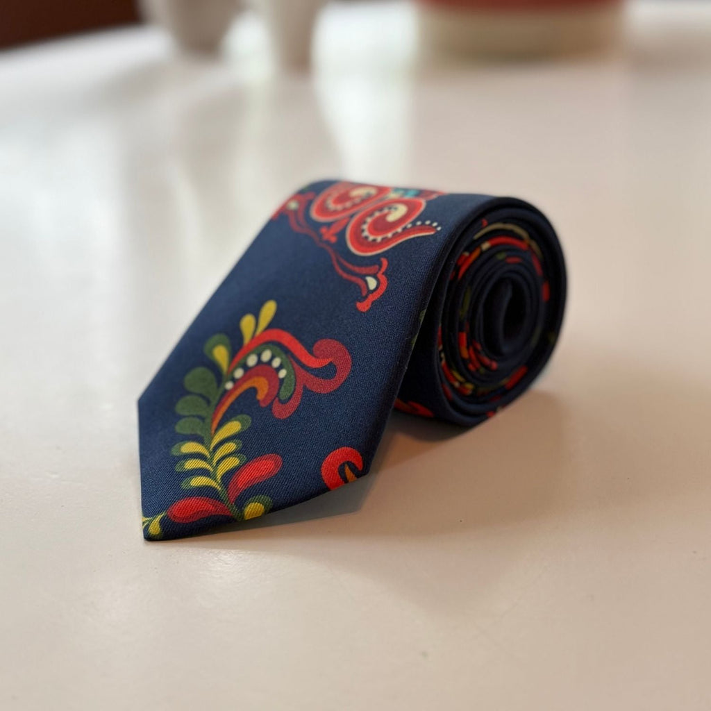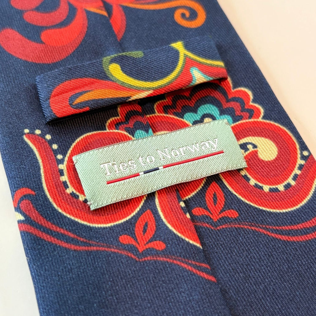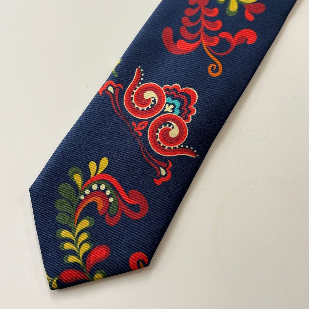 The Øst-Telemark Blue tie is inspired by the striking blue variation of the Øst-Telemark bunad which features the iconic prinsesse pattern.