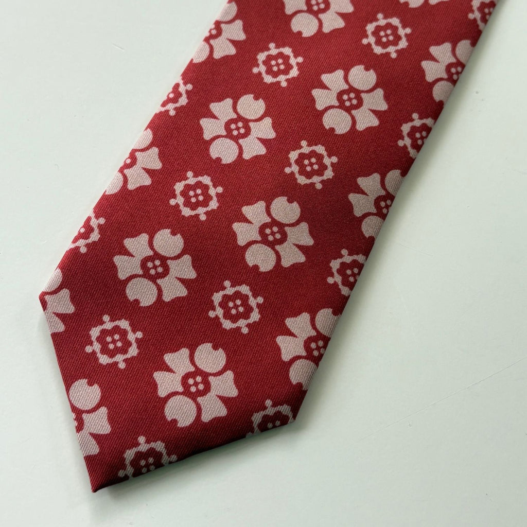 The Trønder Red tie is inspired by the traditional Trønderbunad, reflecting the vibrant culture and storied heritage of Trøndelag in central Norway.